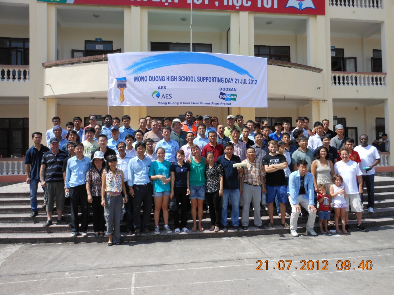 Vào ngày 21 tháng 7 năm 2012, chúng tôi phối hợp với Nhà thầu EPC, Doosan Vina, cùng tổ chức Ngày sơn trường tại Trường THPT Mông Dương. Sự kiện đã thành công tốt đẹp với 83 người, bao gồm nhân viên của Công ty, nhân viên của Doosan và học sinh của giáo viên của trường cùng tham gia. Chúng tôi đã sơn lại 20 phòng học với tổng diện tích 512m². Hoạt động này không chỉ giúp cải thiện cơ sở hạ tầng trường học, mà còn giúp nhân viên của chúng tôi, và của Doosan, cảm thấy có ý nghĩa hơn khi được trực tiếp tham gia vào hoạt động cộng đồng và được kết nối với cộng đồng địa phương.